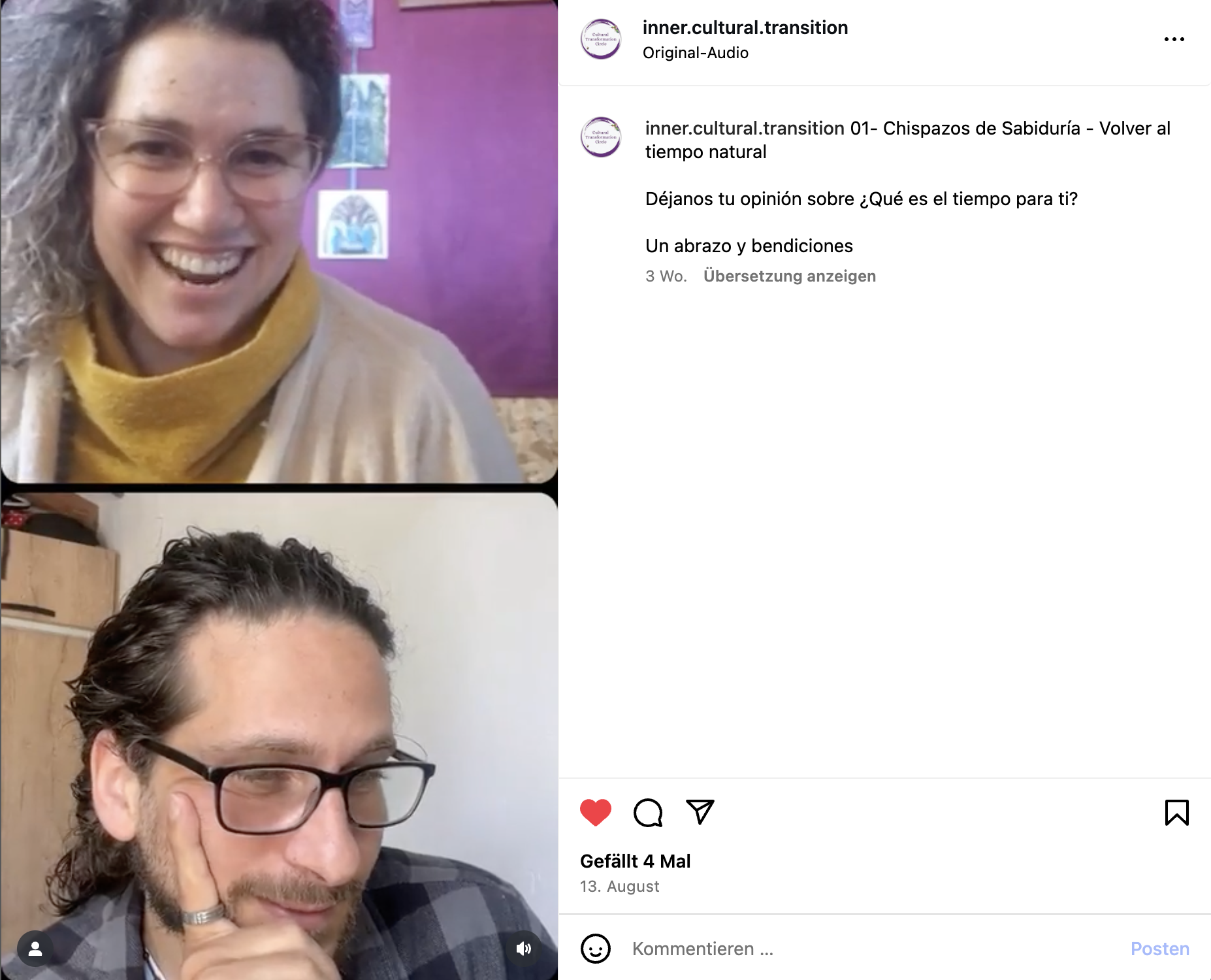 Once or twice a month we open a space to allow the emergence of our collective wisdom. A series of live sessions on our Instagram channel @inner.cultural.transition to explore, with people from the Transition Movement and allied networks/organizations, how we cultivate collective resilience in a grounded, practical, and meaningful way. Not just inspiration: tools, everyday actions, and shared paths to regenerate ourselves, our communities, and the earth we inhabit.