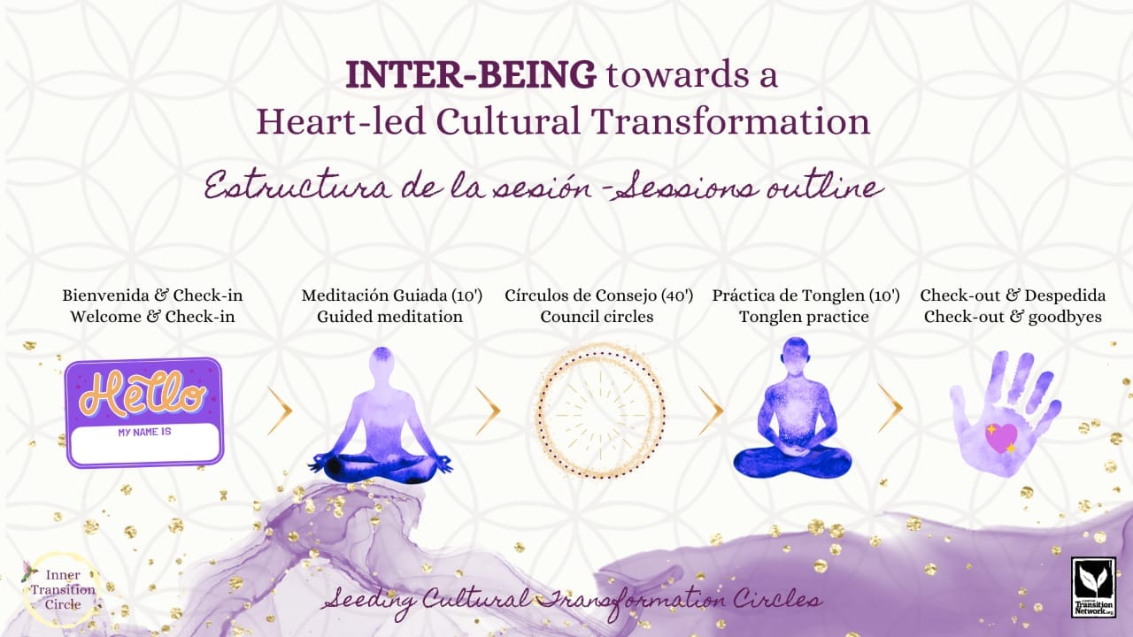 Together we create a cared and intentional space where we unite from the heart, becoming one with who we are as part of the great web of Life, experiencing the quality of Inter-Being in an almost timeless encounter.